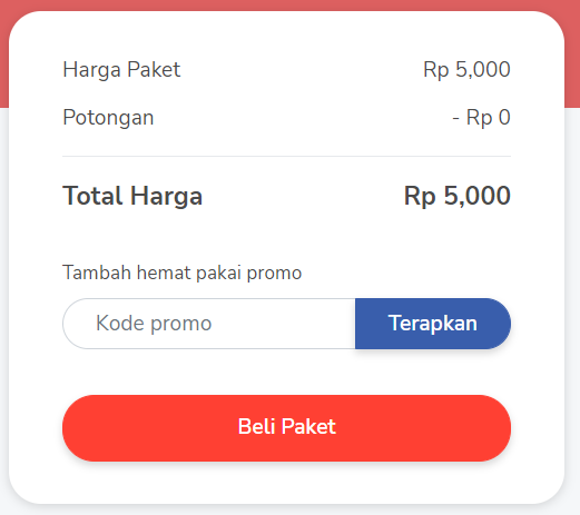 Pilih produk yang tersedia pada menu “Tryout”, “Video”, atau “kelas Online”. Masukan Kode Promo (jika ada) lalu klik “Terapkan” kemudian klik "Beli Paket".